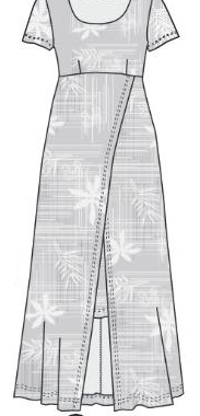 Robe longue croisée ouverture sur une jupe courte. Haut avec pinces et manches courtes.