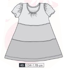 Robe courte avec manches courtes froncée. En 3 parties devant et dos pour faire un dégradé de couleur, fronces à l’encolure devant