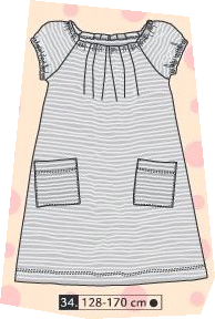 Robe en jersey, plis devant et dos, encolure élastiquée, manches raglans courte et élastiquées