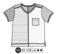 Tee shirt manches courtes, col V et découpe des devant et dos. Fentes sur le bas des côtés