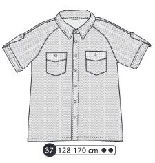 Chemise manches courtes raglans avec patte sur le dessus. Poches plaquées à rabat, boutonnée devant.