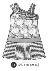 Tunique ou robe courte avec une bretelle et volant sur l’épaule jusqu’à l’aisselle en diagonale, jupe avec ceinture