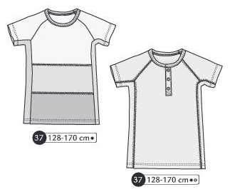 Tee shirt manches courtes raglans. Découpe côté et devant ou non selon modèle choisi et patte de boutonnage devant ou non selon modèle