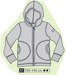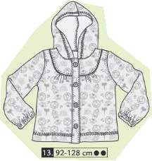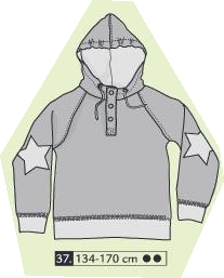 Sweat à capuche avec manches resserrées avec élastique. Empiècement devant avec fronces. Fermeture par boutons devant