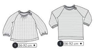 Tee shirt ou blouse manches longues raglans. Goutte sur le côté fermée avec bride et bouton. Bas de manche froncé pour la tunique comme l’encolure devant