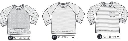 Tee shirt manches longues raglans avec poignets en jersey. Avec ou sans empiècement et avec ou sans poche