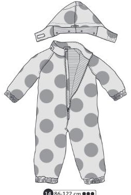 Combinaison pilote avec capuche amovible, bas des manches et jambes élastiqués, manches raglans et fermeture devant