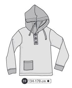 Sweat à capuche avec pressions pour le col. Avec ou sans empiècements devant.