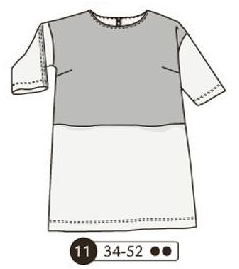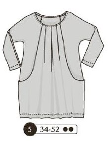 Tunique à manches 3/4 avec empiècement devant formant les poches, plis plats à l’encolure devant.