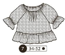 Blouse à volants, manches raglans 3/4 élastiquée aux coudes. Fronces à l’encolure devant