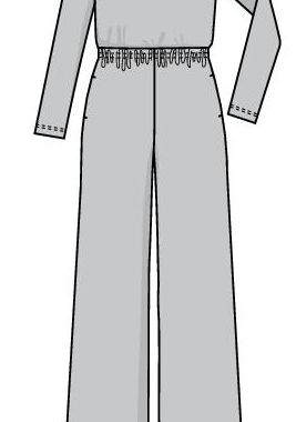 Combinaison manches longues. Poches aux hanches, fermeture invisible au dos haut et taille élastiquée