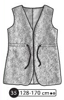 Tunique trapèze, manches longues et volants en bas devant et dos. Goutte dans le dos à l’encolure