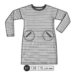Robe droite courte manches longues avec emmanchures plus basses. Poches devant