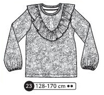 Blouse manches longues élastiquées en bas, volant devant et dos dans le découpe