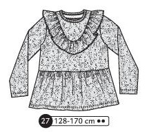 Tunique à manches longues, découpes devant et dos avec volant et jupe froncée