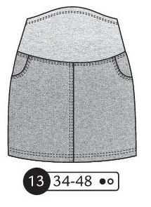 Jupe courte avec poches aux hanches, poches plaquées au dos, empiècements dos et ceinture haute pour le ventre de grossesse