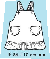Robe tablier avec bretelles croisées au dos, poches plaquées devant et volant froncé devant et dos. Taille élastiquée au dos. Fermeture des bretelles avec bouton