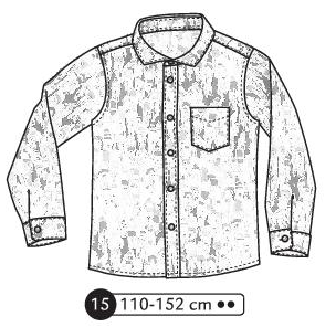 Chemise manches longues avec fente et bouton aux poignets. Empiècement dos, col avec pied de col, poche plaquée devant. Boutonnage devant