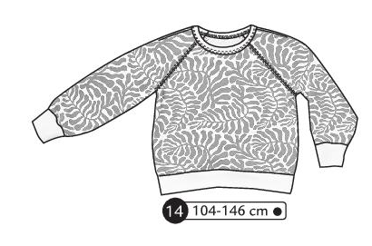 Sweat avec bande sur le dessus des manches allant jusqu’à l’encolure. Bord côte à l’encolure et aux poignets