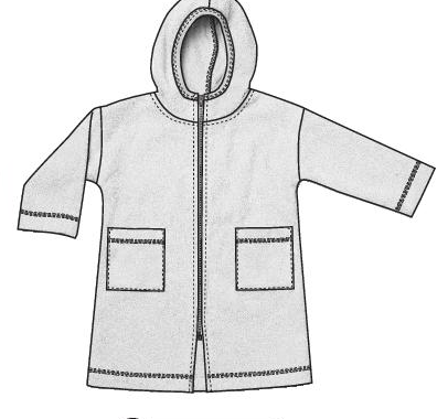 Peignoir en éponge avec manches longues et capuche. Poches plaquées devant. Fermeture devant jusqu’à la capuche