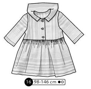 Tunique manches 3/4 avec col marin. Jupe froncée et boutonnage devant haut.