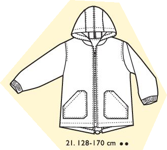 Parka avec capuche, poches plaquées devant, fente dans le bas du dos, poignets élastiqués, fermeture zip devant