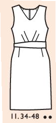 Robe courte sans manches avec pinces encolure dos, taille devant et dos, plis sur le partie supérieure milieu devant. Encolure V, fermeture invisible au dos, ceinture par dessus à agrafer