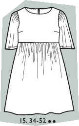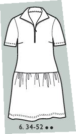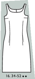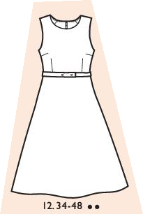 Robe courte sans manches avec encolure ronde, pinces poitrine, pinces à la taille devant et dos et pinces à l’encolure dos. Jupe évasée en trapèze, fermeture invisible au dos. Ceinture en plus à boutons