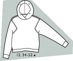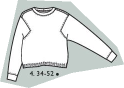 Sweat plus ou moins court selon la version, avec un élastique à la taille ou bien ajout d’un bande de ceinture pour un peu plus de longueur. Emmanchure carrée pour un effet différent.