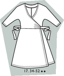 Robe cache cœur courte à manches 3/4 sans couture d’emmanchure. Liens pour nouer à la taille