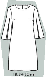 Robe courte, droite, à manches longues fendues jusqu’au dessus du coude. Pinces poitrine et à l’encolure dos, pinces également au dos et éventuellement devant selon essayage. Robe doublée