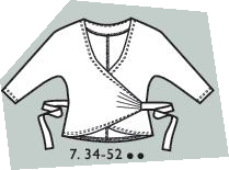 Cache cœur court en jersey, manches 3/4 et liens pour le nouer. Pas de couture d’emmanchure