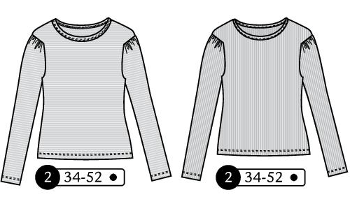 Tee shirt manches longues avec découpe carrée aux épaules et fronces sur le haut des manches