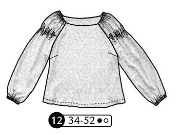 Blouse en crêpe manches longues raglans, élastiquée aux poignets, aux épaules et à l’encolures. Pinces poitrine.