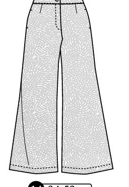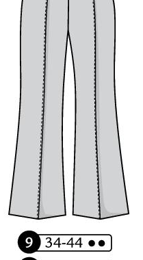Pantalon légèrement évasé à partir du genou et ajusté aux cuisses et hanches. Plis piqués sur la longueur des jambes devant, pinces au dos, petite ceinture. Fermeture invisible sur une hanche avec bouton invisible à la ceinture