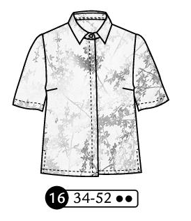 Chemisier manches courtes avec pinces poitrine, fentes en bas des côtés, col et pied de col. Boutonnage masqué sur le devant