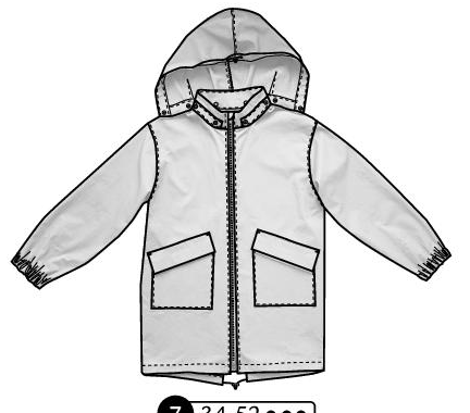 Manteau léger avec capuche amovible (avec pressions). Manches élastiquées aux poignets, poches plaquées avec rabats à velcro sur le devant, fente au dos et lien de serrage en bas. Fermeture éclaire devant. Modèle sans doublure