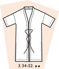 Peignoir en viscose, manches 3/4 avec liens à nouer sur les devants. Fentes sur le bas des côtés.