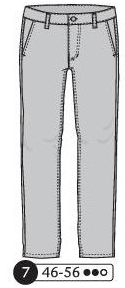 Pantalon de toile avec braguette et bouton à la ceinture. Poches aux hanches et poches à revers au dos