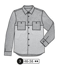 Chemise manches longues avec fente, pli et bouton aux poignets. Col avec pied de col, découpe devant et dos, poches boutonnées plaquées devant et boutonnage devant