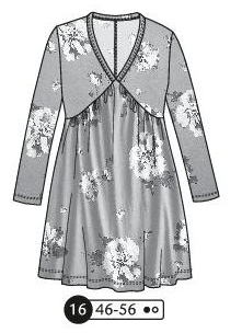 Tunique col V et découpes devant avec fronces sous poitrine, manches longues
