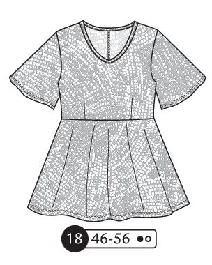Tunique manches courtes col V, pinces devant, jupe évasée