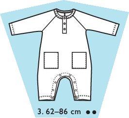Combinaison manches raglans, poche kangourou plaquée devant, pressions à l’entrejambe. S’enfile par la tête
