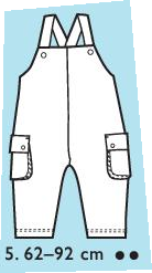 Salopette avec brettelles croisées au dos, poches à soufflet et rabat sur les côté des jambes. Taille élastiquée au dos.