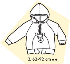 Sweat à capuche avec zip sur le haut du devant, manches raglan, bord côte aux manches et à la ceinture. Appliqué ourson devant.