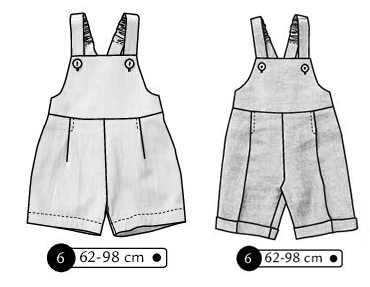 Salopette courte en coton avec bretelles élastiquées croisées au dos. Plis devant, poches plaquées au dos, taille élastiquée au dos. 2 longueurs : short ou pantacourt