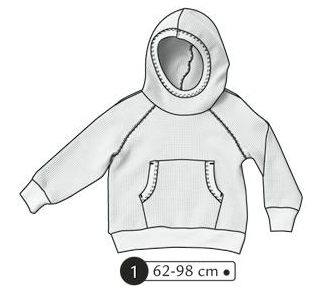 Sweat à manches raglans et capuche. Poche kangourou devant, bord côte aux manches, ceinture et ouverture de la capuche