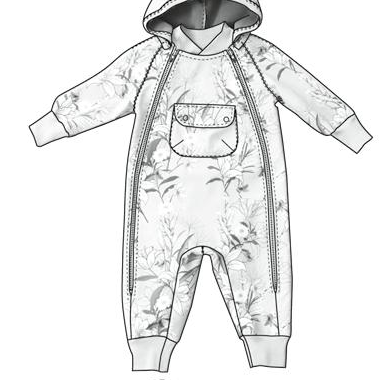 Combinaison softshell aux manches raglans avec capuche amovible grâce à des pressions. Col en bord côte comma les poignets et les chevilles. Poche à rabat plaquée devant. Fermeture éclaire sur les côtés descendant jusqu’aux genoux.