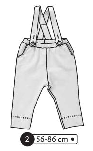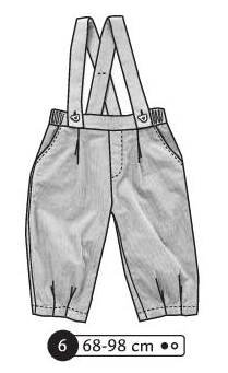 Pantalon en velours côtelé avec bretelles. plis devant à la taille et aux chevilles, poches aux hanches. Poches plaquées au dos, bretelles croisées au dos et boutonnées devant. Fausse braguette et taille élastiquée