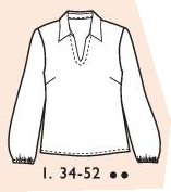 Blouse manches longues élastiquées aux poignets, pinces poitrine. Col avec pied de col, fente formant une encolure V